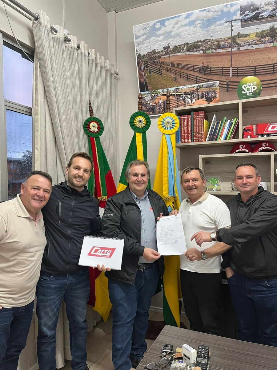 ✅No dia 28 de outubro de 2025, estiveram reunidos na sala de reuniões do Centro Administrativo, o prefeito Vilson Altmann, vice prefeito Rodrigo Maier, presidente da CEAT Giovani Farias, os proprietários da Empresa Catto Transportes Ltda, Carlos Catto e Andreus Catto, que está instalada em Santo Antônio do Planalto à cinco anos, onde apresentou à Administração Municipal o pedido de nova área para ampliação de seu empreendimento.
