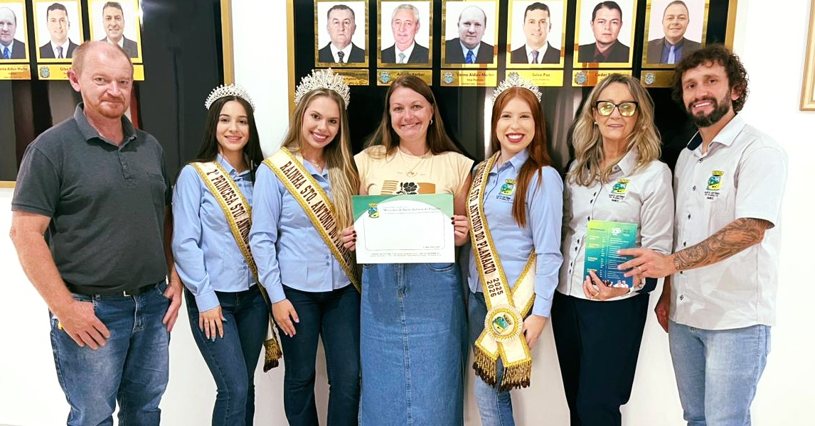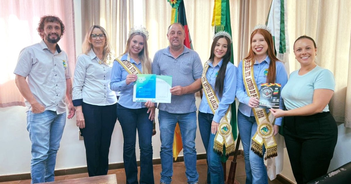 Uma comitiva de Santo Antônio do Planalto, formada pelo diretor de Cultura, Jussie Berwig, pela secretária de Educação e Cultura, Joicem Hummes, e pela Corte de Soberanas, realizou visitas à região para divulgar a ExpoSap 2026. A agenda aconteceu nesta segunda-feira (16/03), com passagens pelos municípios de Ernestina, Victor Graeff, Não-Me-Toque e Tio Hugo.