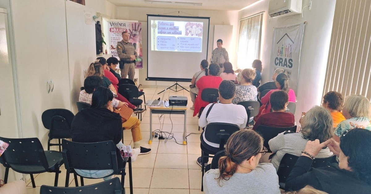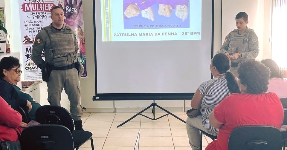 A atividade foi conduzida pelos soldados Jéssica Luiz Machado e Pedro Augusto Werlang, da Brigada Militar, que abordaram a identificação dos diferentes tipos de violência, as formas de denúncia e a importância do acolhimento às vítimas.